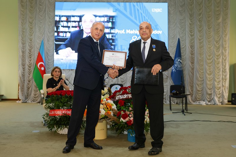 Tədbirin sonunda UNEC rəhbərliyi adından professor Məhiş Əhmədova Fəxri Fərman təqdim edilib.