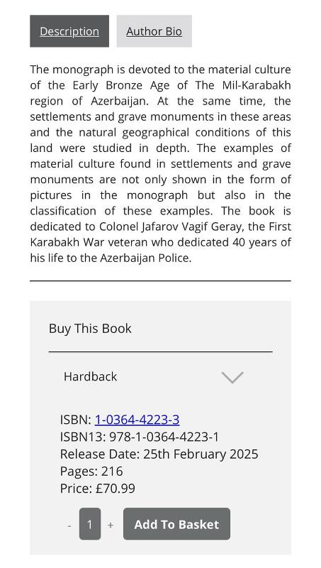 UNEC-in “Humanitar fənlər” kafedrasının dosenti, t.ü.f.d. Cəmilə Həsənovanın Qarabağın arxeologiyasına dair ingilis dilində yazdığı “Material Culture of the Early Bronze age of the Mil-Karabakh Region of Azerbaijan” adlı kitabı İngiltərənin Nyukasl-apon Tayn şəhərində yerləşən Cambridge Scholars Publishing (CSP) akademik kitab nəşriyyatında çap olunub.