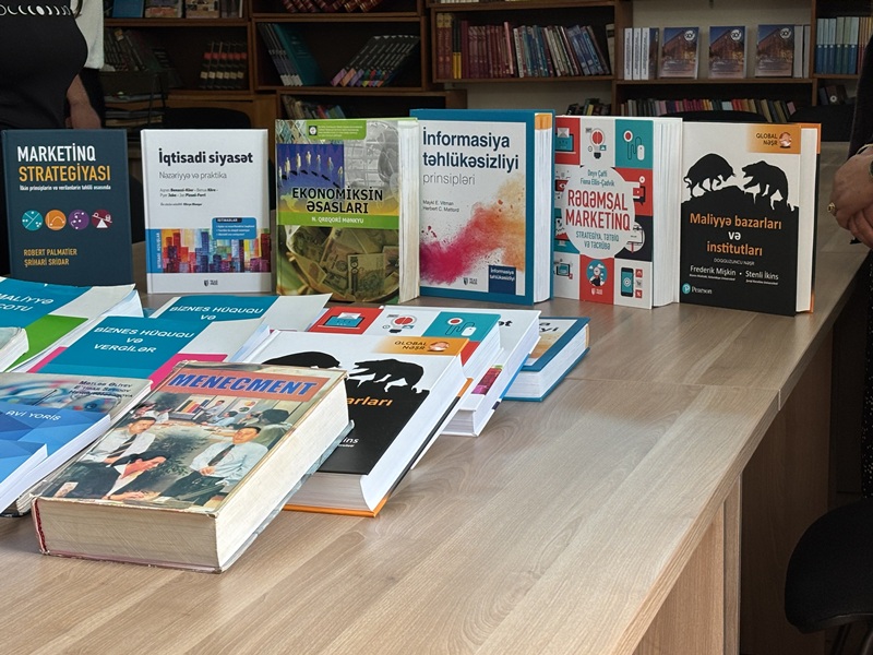 UNEC nəzdində Azərbaycan Maliyyə-İqtisad Kollecinin direktoru h.f.d. Davud Davudovun müraciətini nəzərə alaraq, kollecdə elmin və tədrisin keyfiyyətli təşkilinə dəstək məqsədilə zəruri ehtiyac olan 24 adda 182 nüsxə dərslik, dərs vəsaiti və digər nəşrlər Azərbaycan Maliyyə-İqtisad Kollecinə hədiyyə edilib.