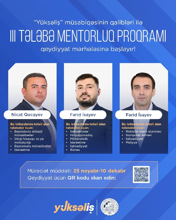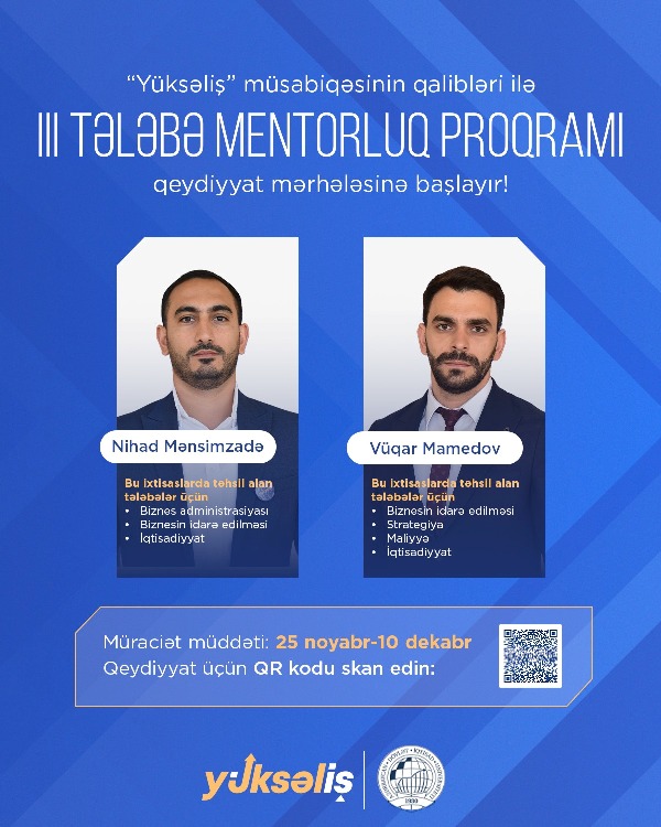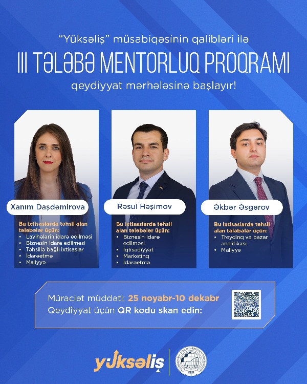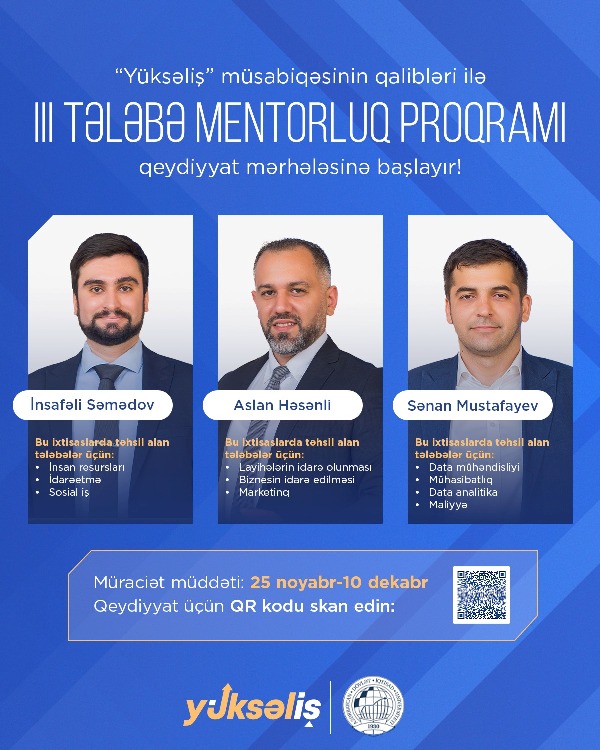 The registration phase for the third Student Mentorship Programme, which is based on knowledge and experience exchange between the winners of the “Yuksalish” competition and third- and fourth-year undergraduate students, is now open.