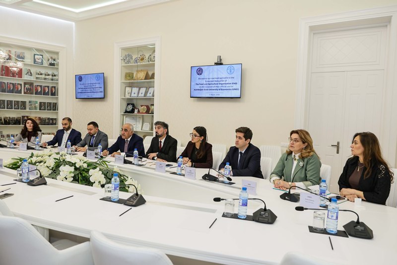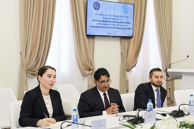 The discussions also encompassed the organization of joint training programmes focusing on the application of artificial intelligence in the agricultural sector, the delivery of specialized training sessions for UNEC students by FAO experts, the preparation of joint academic publications, and the establishment of a Summer School for students at UNEC’s Zagatala branch. The meeting concluded with a mutual understanding to initiate the preparation of a draft Memorandum of Cooperation aimed at formalizing and further institutionalizing the partnership between the two institutions.