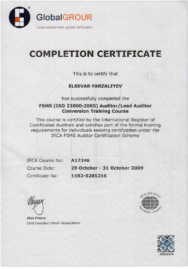 22000:2018 – Qida Təhlükəsizliyi İdarəetmə Sistemi İSO Standartının Azərbaycan dilinə tərcüməsinin həmmüəllifdir.