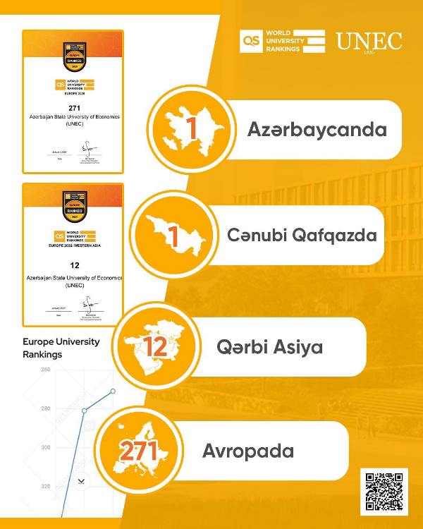 В рейтинге QS EUROPE 2026 UNEC стал первым в Азербайджане и на Южном Кавказе!